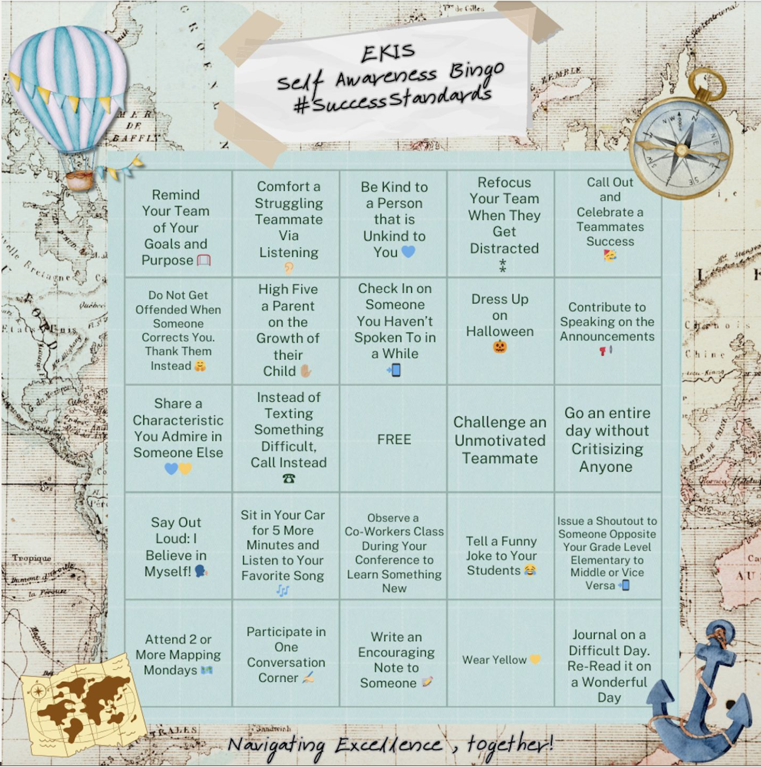 So to complement practices like the Conversation Corner, we include low-pressure, practical skill-building opportunities that support team self-awareness. This year, we’re exploring some light gamification of those skills with what I’m calling Self-Awareness Bingo. Here’s a look at one of our cards: