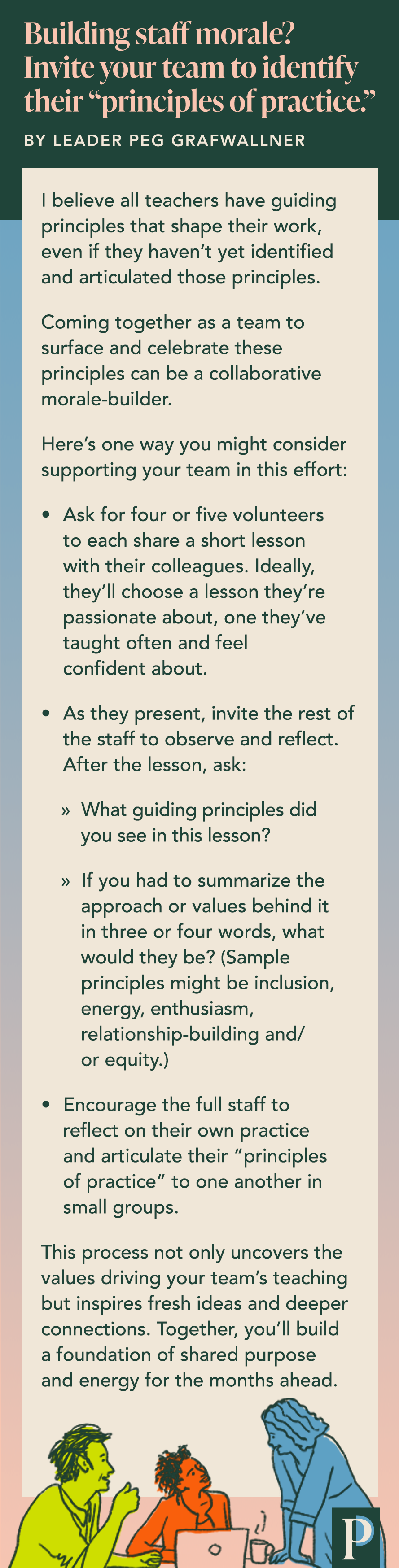 Building staff morale? Invite your team to identify their “principles of practice.”